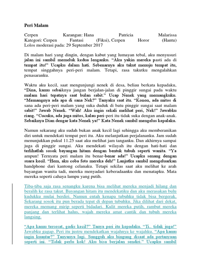 Katanya nanti mereka akan memiliki anak setengah peri yang memiliki kemampuan magic. Muasal Luka 3 dan Puisi Lainnya Cerpen. April 6 2017 Kisah Misteri 3344 Views.