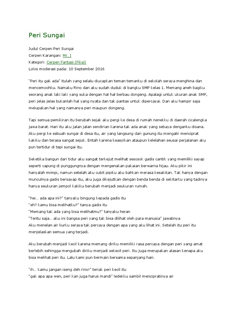 Cerpen tentang peri. Jangan terkecoh dengan kata-kata dunia ajaib tidak kasat mataperi hutan supranaturaldan sebagainya yang tertulis di blurb buku. Peri di Seberang Bukit Pelangi. Memories 2014 merupakan novel keduanya.