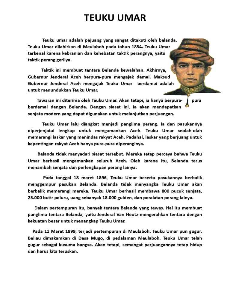 Cerpen Pahlawan Teuku Umar Daniel 7e