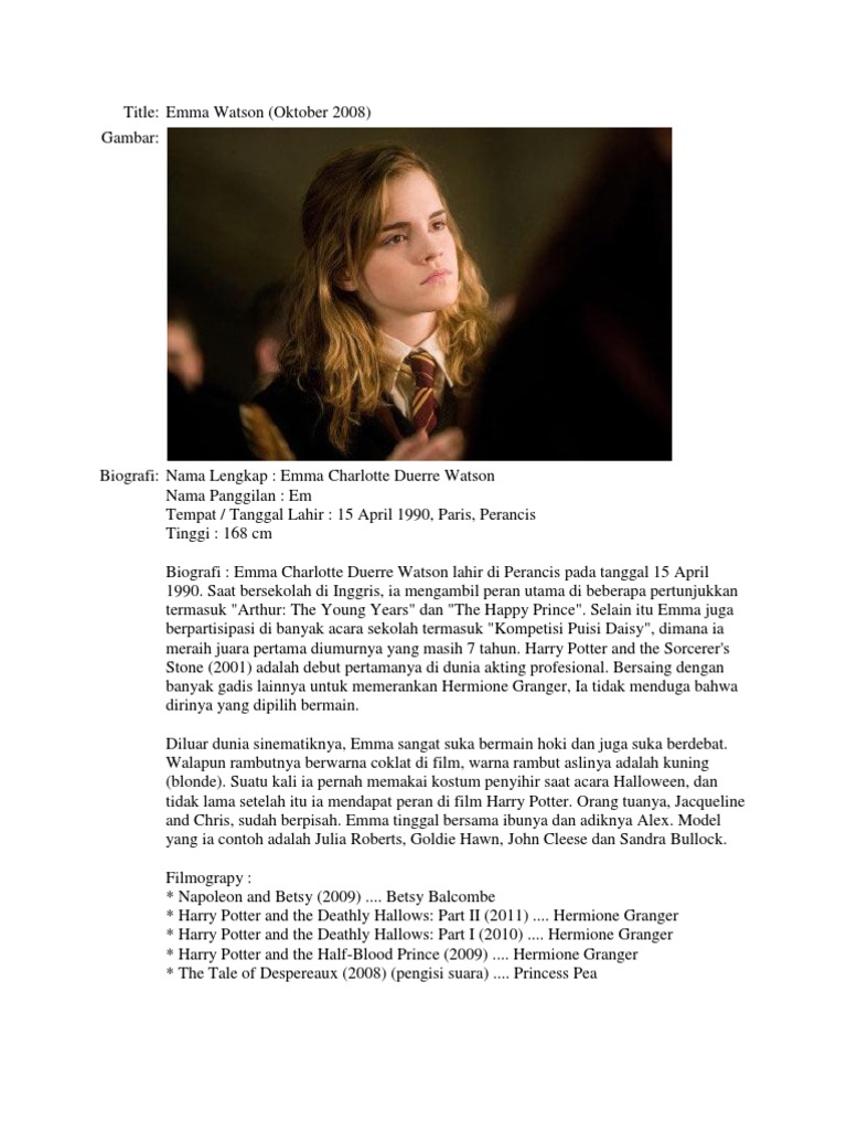 Emma Watson Biografi Emma Watson Age