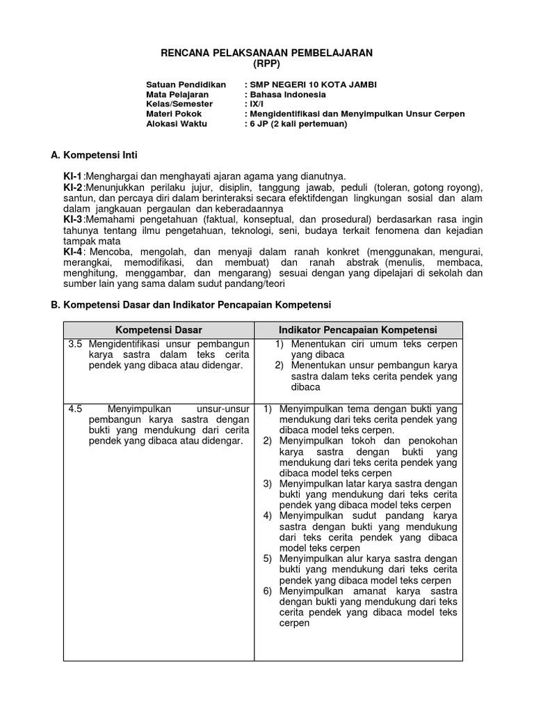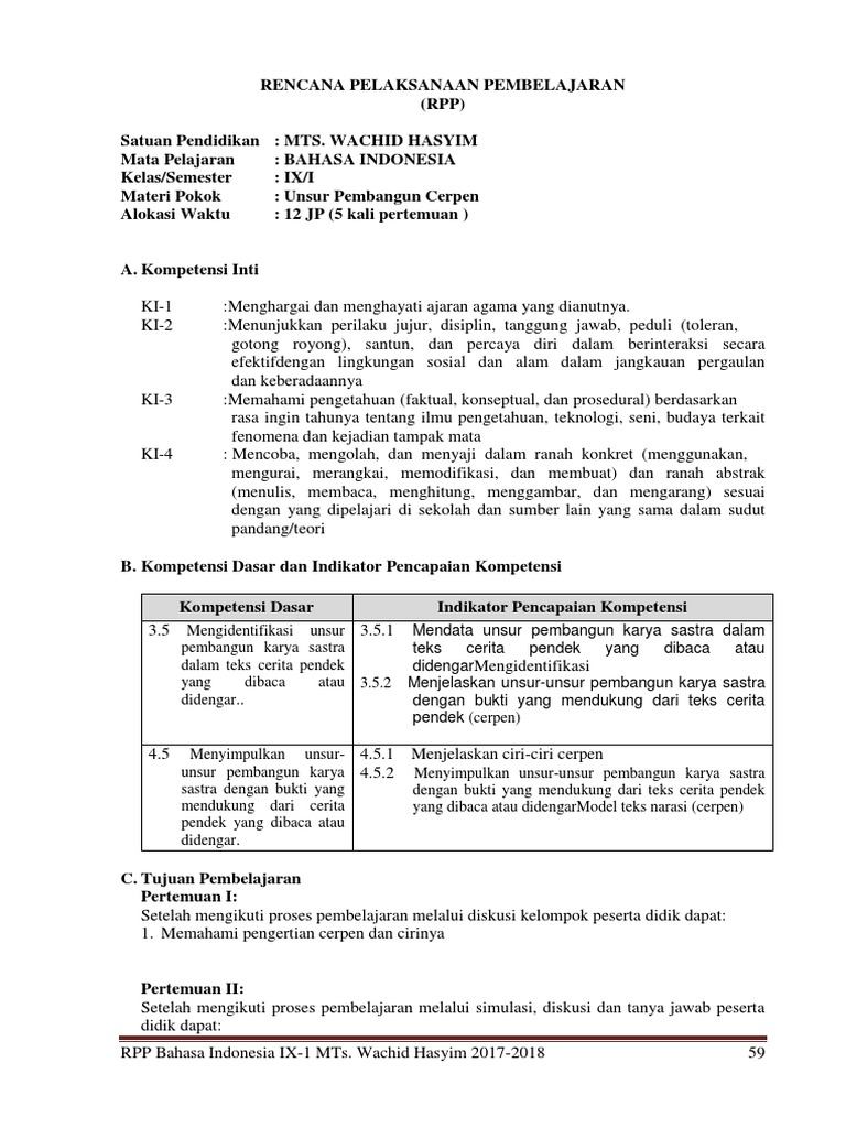 391612733 Rpp 3 5 4 5 Teks Cerpen Kelas 9