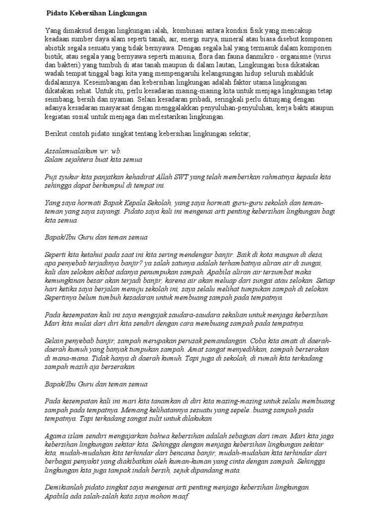 Contoh Pidato Singkat Tentang Kebersihan Lingkungan Rumah Blog Pendidikan