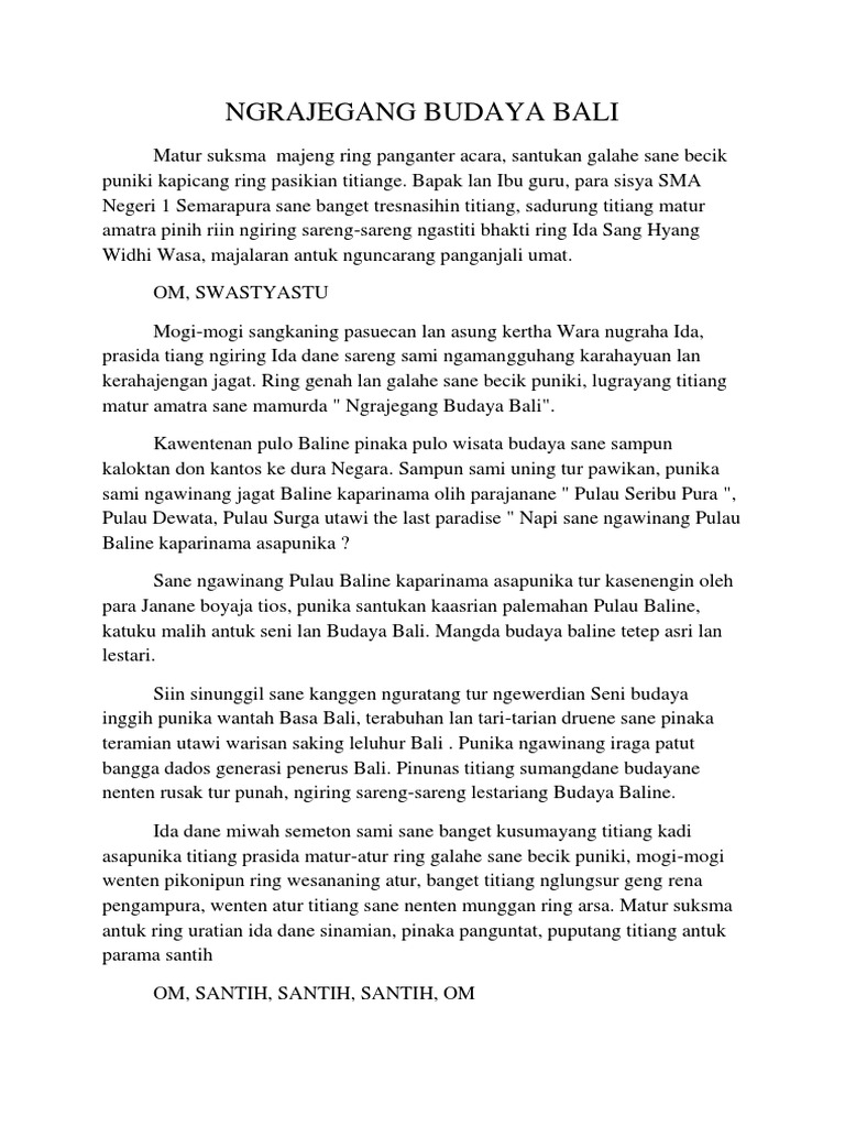 Contoh Pidato Pendek Bahasa Bali pidato ketua seka truna. Contoh teks pidato bahasa bali tentang hari raya pagerwesi. Baik itu acara pernikahan acara ulangtahun.