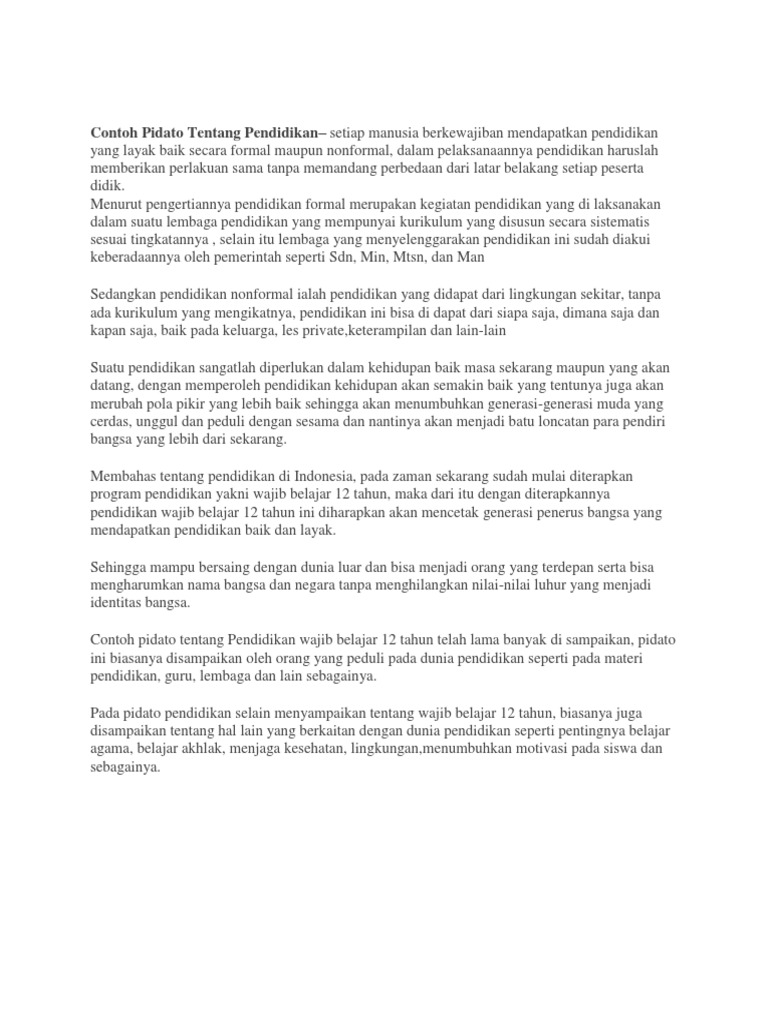 Pengertian Pidato Jenis Macam Tujuan Fungsi Metode Contoh Contoh Pidato. Sekarang Anda sudah bisa membuat teks pidato yang. Pendidikan adalah PLS Pendidikan Luar Sekolah.
