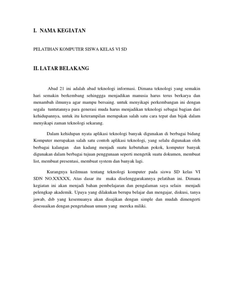 Contoh Proposal Pelatihan Komputer Untuk Siswa Berbagi Contoh Proposal Cute766