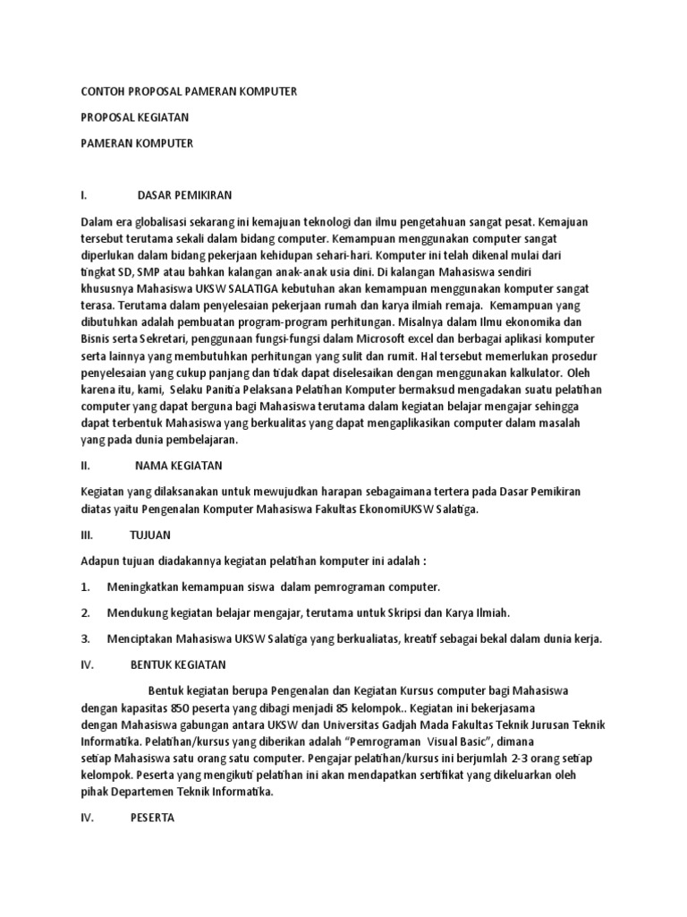 Contoh Proposal tentang pelatihan komputer Diposting oleh Adenia kahfianti Kamis 22 November 2012 PROPOSAL PENDAHULUAN Perkembangan teknologi informasi komputer disegala bidang tumbuh begitu pesat merambah. Aplikasi pmp dirancang sedemikian rupa sesuai dengan kaidah kaidah sistem penjaminan mutu pendidikan dasar dan menengah yang bertujuan untuk menjamin pemenuhan standar pada satuan pendidikan dasar dan menengah secara sistemik holistik dan berkelanjutan sehingga tumbuh dan. LATAR BELAKANG KEGIATAN PELATIHAN Pesatnya perkembangan teknologi komputer dan informasi baik secara hardware.