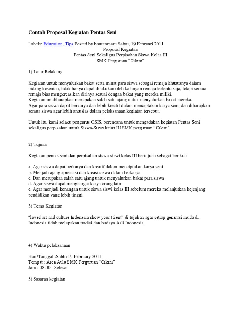 Contoh Proposal Kegiatan Pentas Seni Di Sekolah Berbagi Contoh Proposal