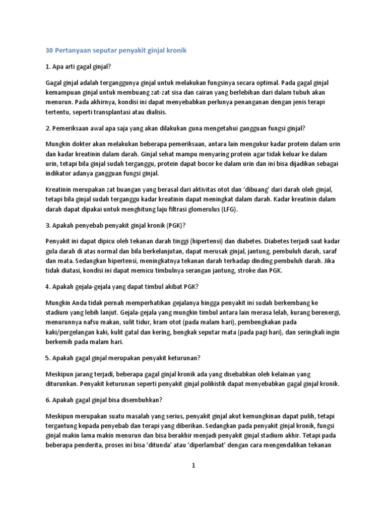 30 Pertanyaan Seputar Penyakit Ginjal Kronik