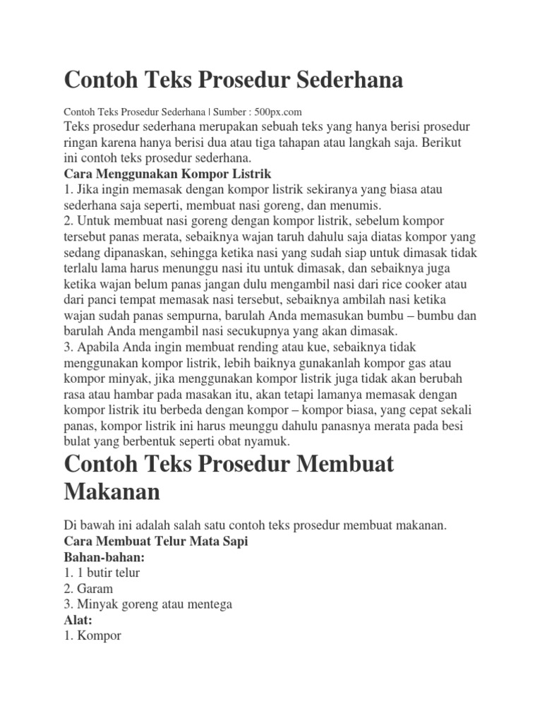 26 Contoh Teks Prosedur Kompleks Singkat Makanan Kerajinan Tutorial Dll