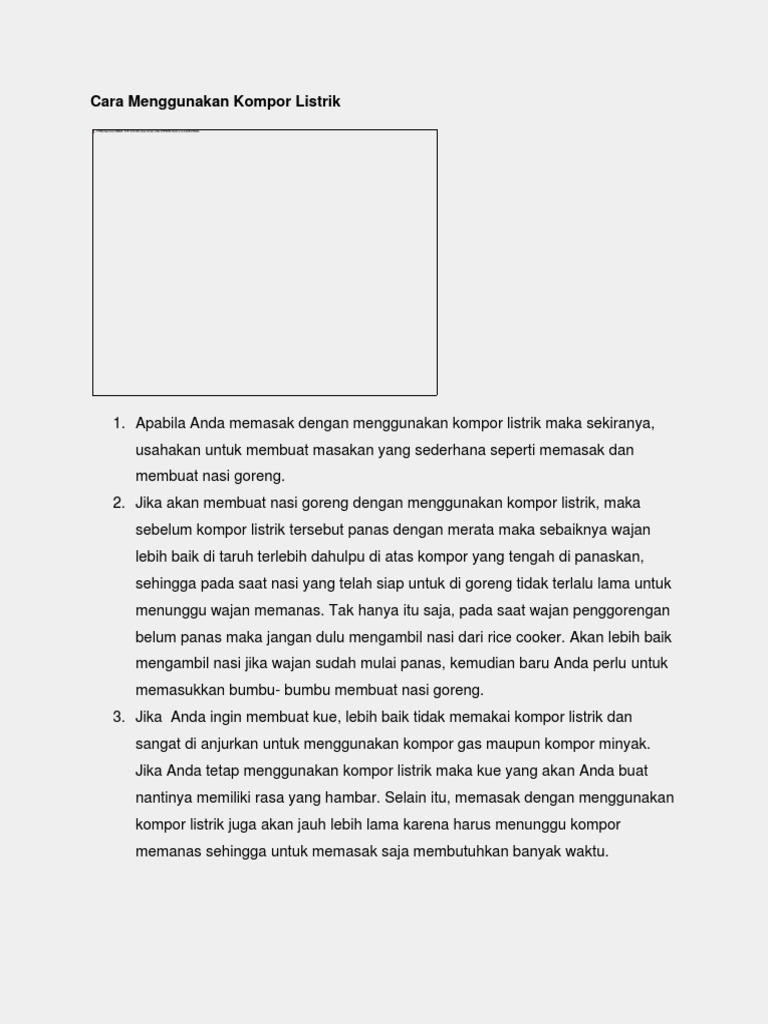 Contoh teks prosedur cara menggunakan kompor listrik. Admin dari blog Terkait Teks 2019 juga mengumpulkan gambar-gambar lainnya terkait contoh teks prosedur cara menggunakan kompor listrik dibawah ini. Contoh Teks Prosedur Cara Menggunakan Blender Pada zaman yang sudah modern saat ini blender sudah menjadi salah satu alat dapur yang harus di miliki oleh ibu-ibu. Cara Mengurus Visa Secara umum visa merupakan tanda bukti izin untuk berkunjung ke suatu Negara dengan tujuan wisata atau bekerja selama jangka waktu.