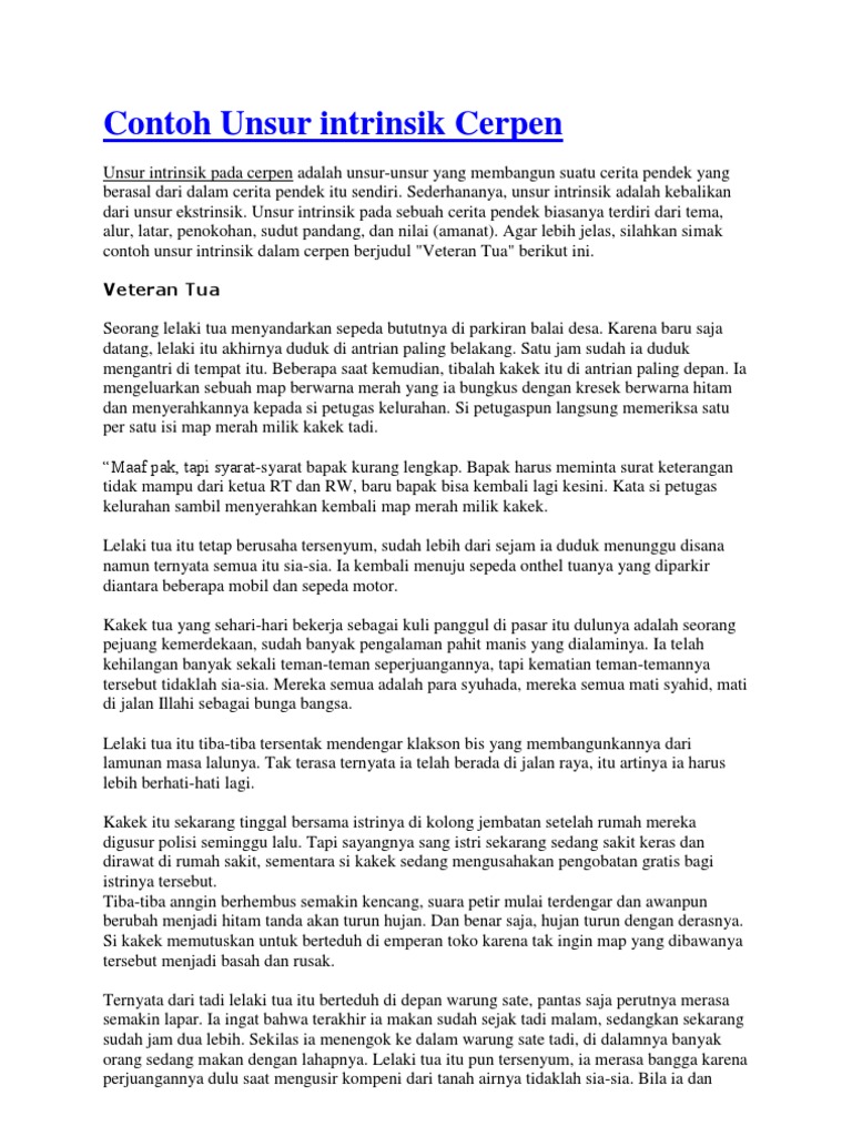 Contoh Cerpen Yang Memiliki Unsur Intrinsik Dan Ekstrinsik Temukan Contoh