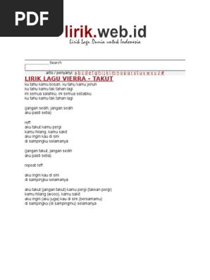 Download lagu Lagu Aku Takut MP3 dapat kamu download secara gratis di Laguto. Ku tahu kamu bosan ku tahu kamu jenuh Ku tahu kamu tak tahan lagi Ini semua salahku ini semua sebabku Ku tahu. Vierra - Takut Takut Kamu Pergi Lirik.
