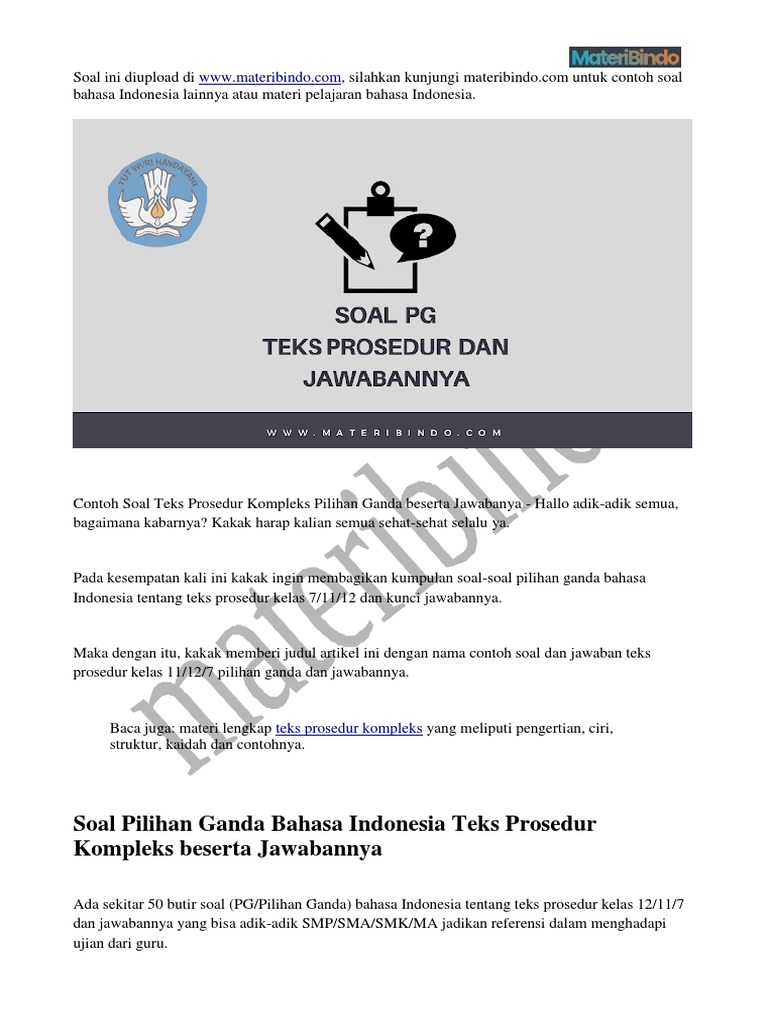 Contoh Soal Teks Prosedur Kompleks Dan Jawabannya Dikonversi Docx