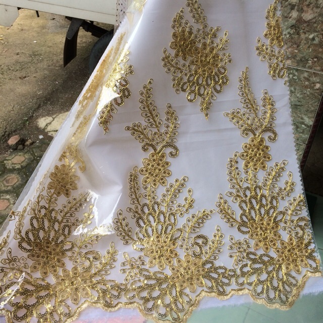 Kain Brokat Tile Embroidery Mewah Warna Gold Shopee Indonesia