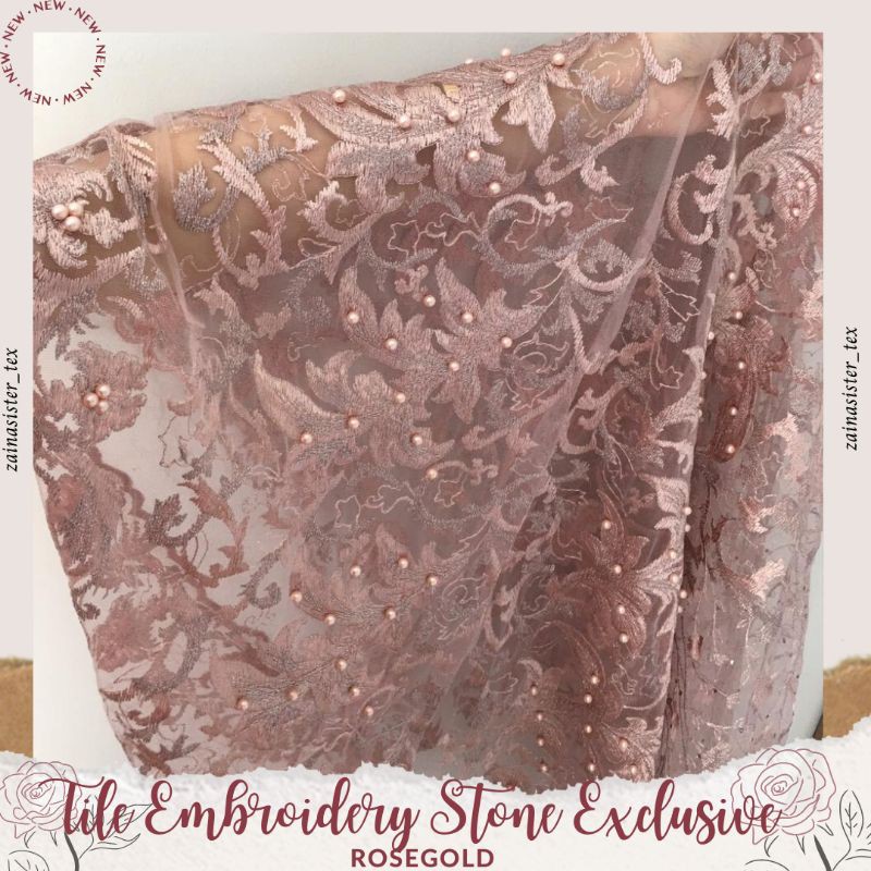 Kain Brokat Tile Embroidery Mewah Warna Rose Gold Shopee Indonesia