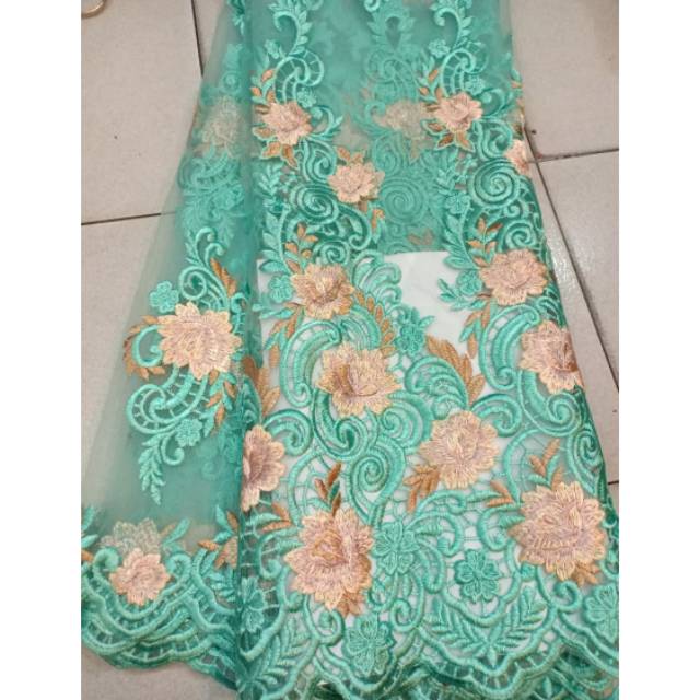 Satu Meter Kain Brokat Tile Prancis Bahan Kebaya Motif Bunga Lazada Indonesia