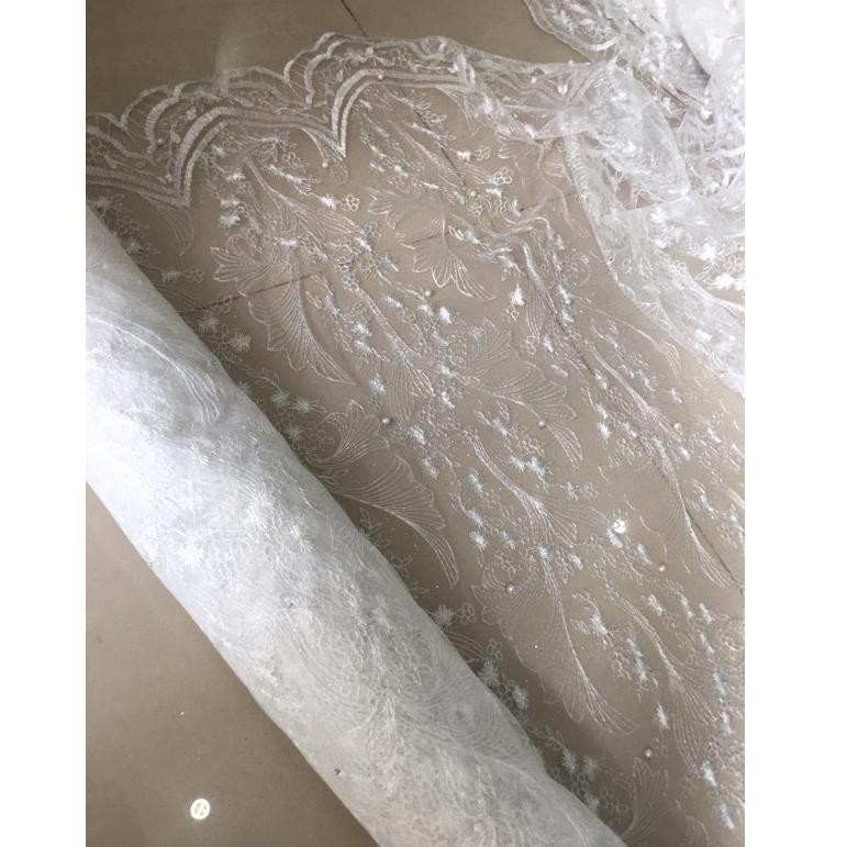 Kain Brokat Tile Tulle Mutiara Broken White Putih Tulang Mewah Kode 2210 Shopee Indonesia