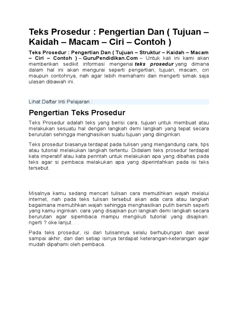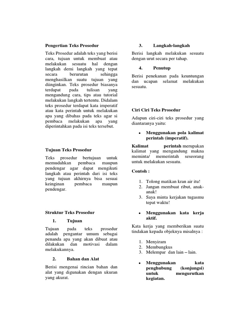 Teks Prosedur Adalah Ciri Kaidah Struktur Jenis Contoh