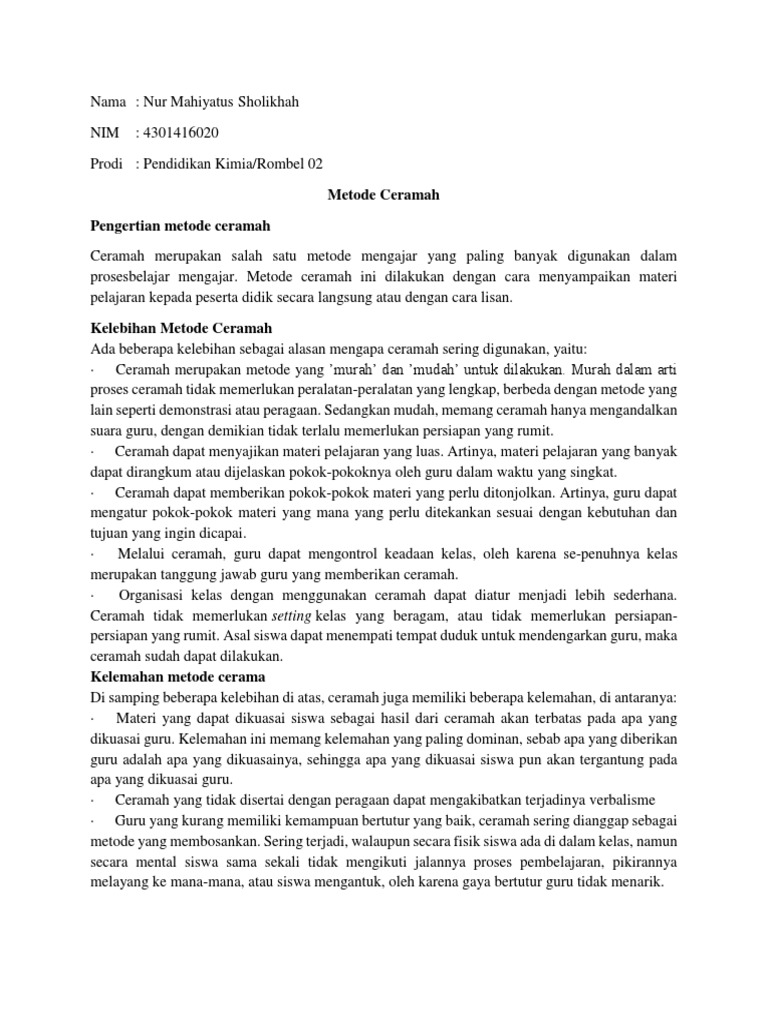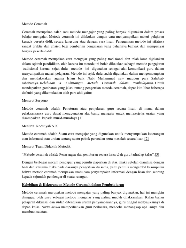 Doc Metode Ceramah Kekurangan Dan Kelemahanya Hadiyatan Wasilah Academia Edu