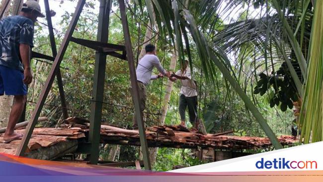 Warga Pajaten Pangandaran Gotong Royong Perbaiki Jembatan