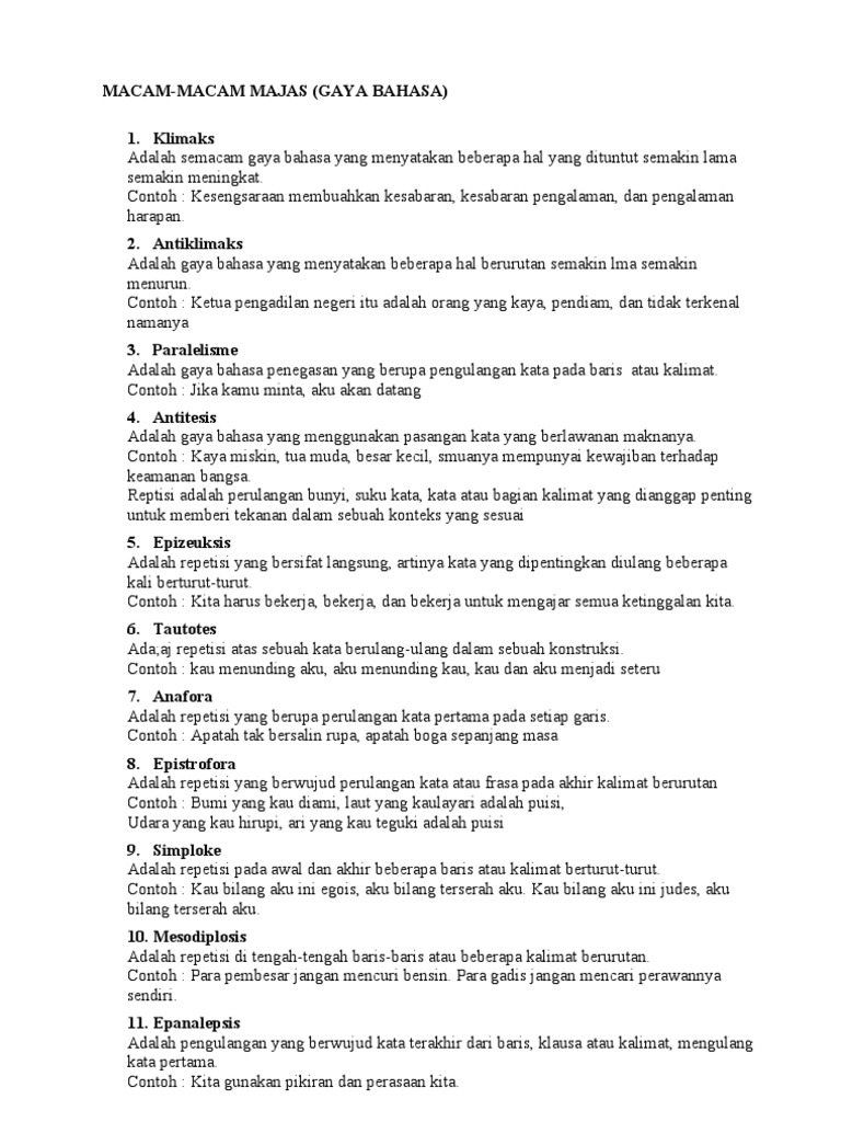 Terlengkap 16 Macam Macam Majas Beserta Contohnya 2021