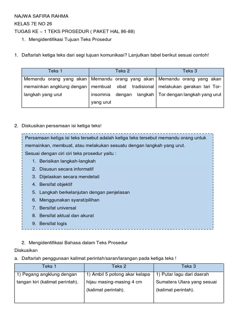 Tugas Bahasa Indonesia Kelas Vii Mengidentifikasi Bahasa Dalam Teks Prosedur Kurikulum 2013 Beserta Jawabannya Solidar Aslaemi
