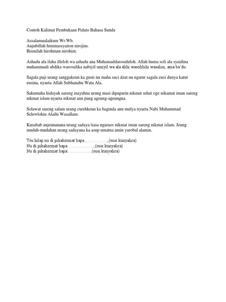 Contoh Mukadimah Pidato Bahasa Sunda