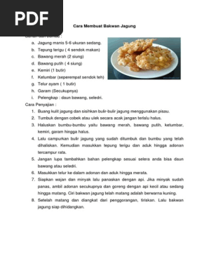 Teks Prosedur Cara Membuat Bakwan Jagung Sketsa