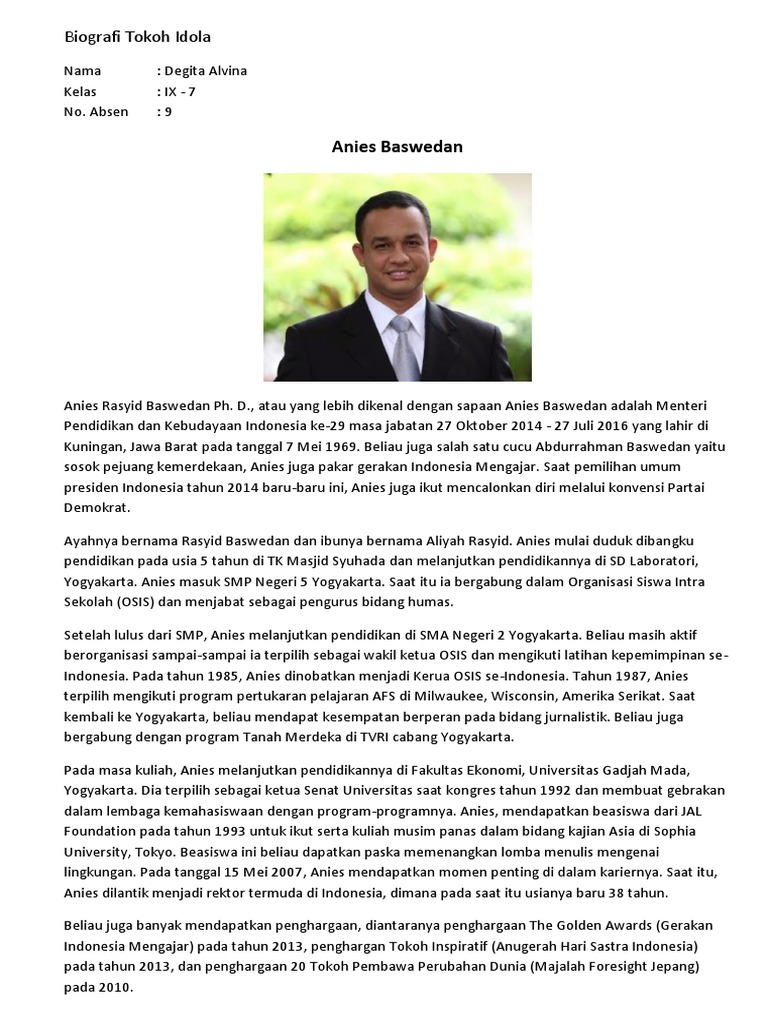 Biografi Tokoh Idola Anies Degita