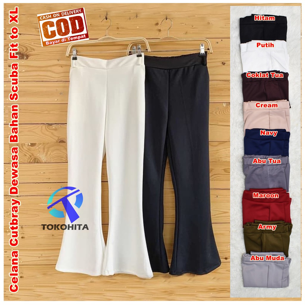 Untuk alasan kenyamanan celana kulot banyak dibuat dari bahan kain yang jatuh meski ada juga yang berbahan tebal seperti corduroy atau kain denim. Lingkar Pinggang 96 cm. Jual Fashion Celana Scuba Cutbray Panjang Wanita Jual Fashion Celana Scuba Cutbray Panjang Wanita Kekinian MF dengan harga Rp79 900 dari toko online JumboStore Jakarta Barat Cari produk Celana Panjang Wanita.