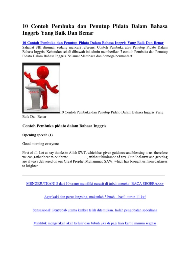 Penutup pidato dalam bahasa inggris. Pidato Lucu Tentang Pergaulan Bebas Pigura. On this very happy occasion I would like to talk about Islam saves our life.