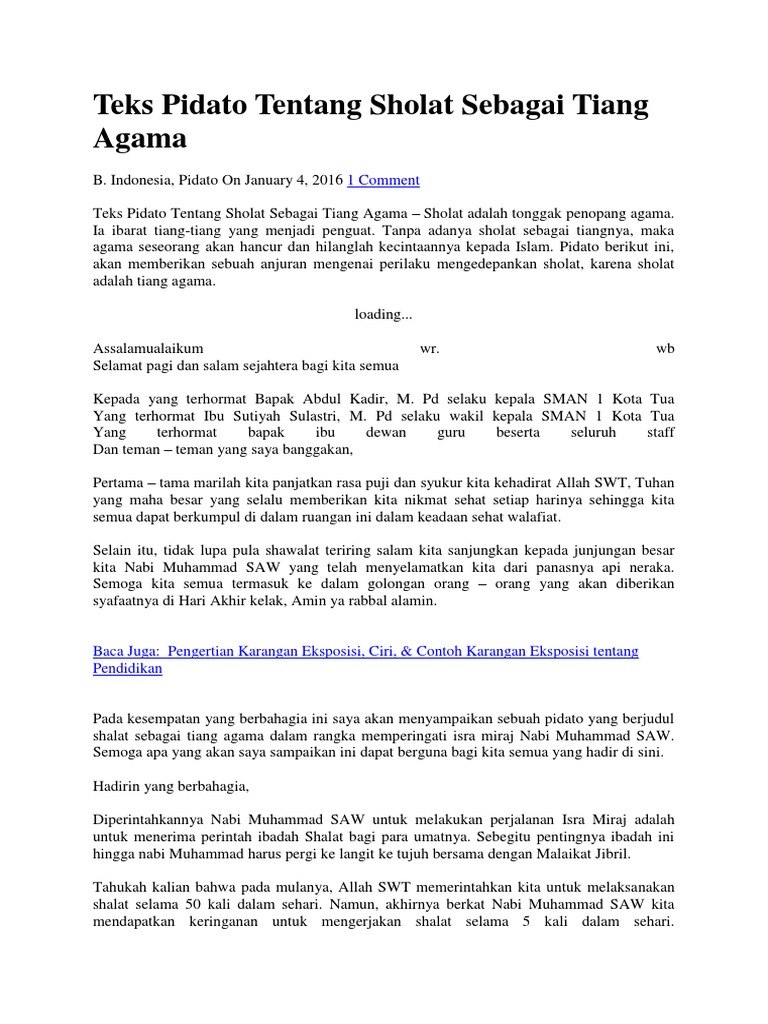 Teks Pidato Tentang Sholat Kumpulan Referensi Teks Pidato