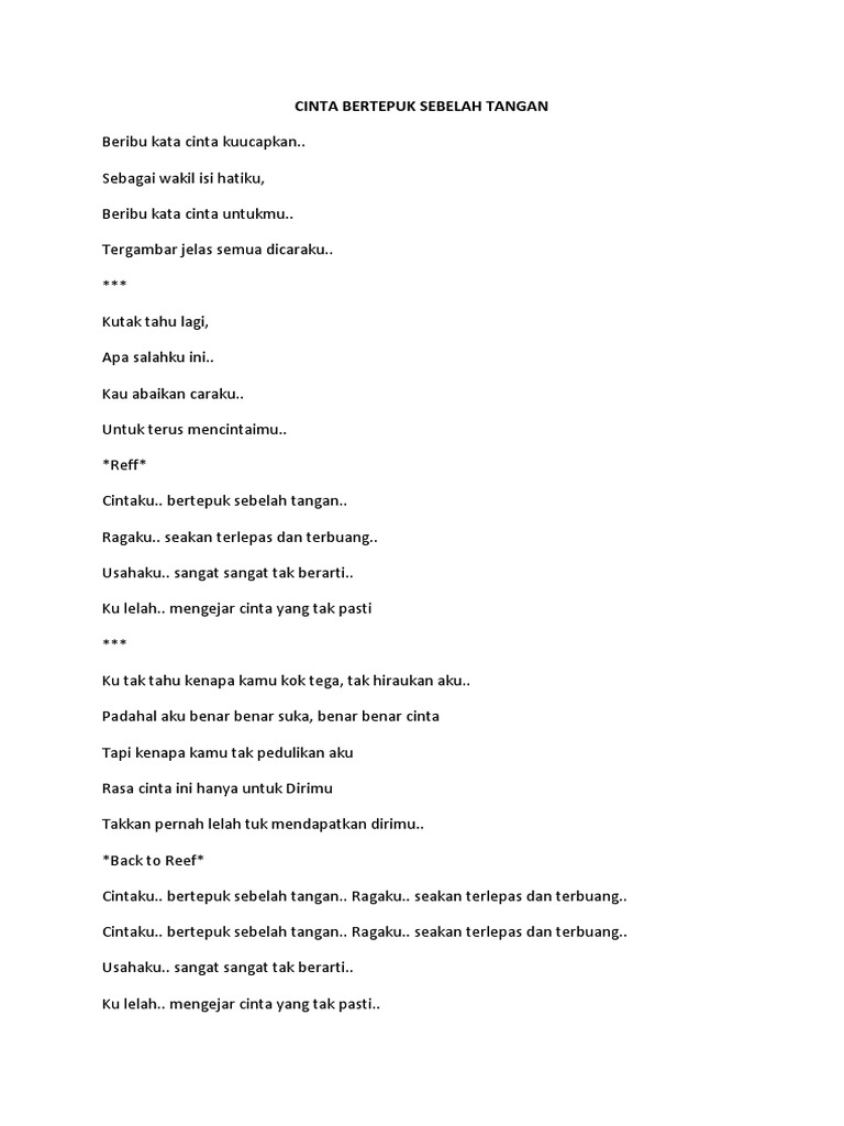 Bertepuk Sebelah Tangan Cerpen Karangan. Love united high school paradise nd half by orizuka reviews mirip peringkat suarabegitu juga sekarang yang terjadi pada fantastic four nya smu athens jadi ketika bukunya ada di tangan saya tidak sabar untuk membacanya kalau jatuh cinta itu sakit mungkin kalau cinta kita bertepuk sebelah tangan malah jadi cengar cengir sendiri baca kisah cinta anak sma yang meremaja banget di sini. Aku pun memiliki teman dekat yang kemana-mana selalu berempat mereka bernama Citra Indah dan Rara.