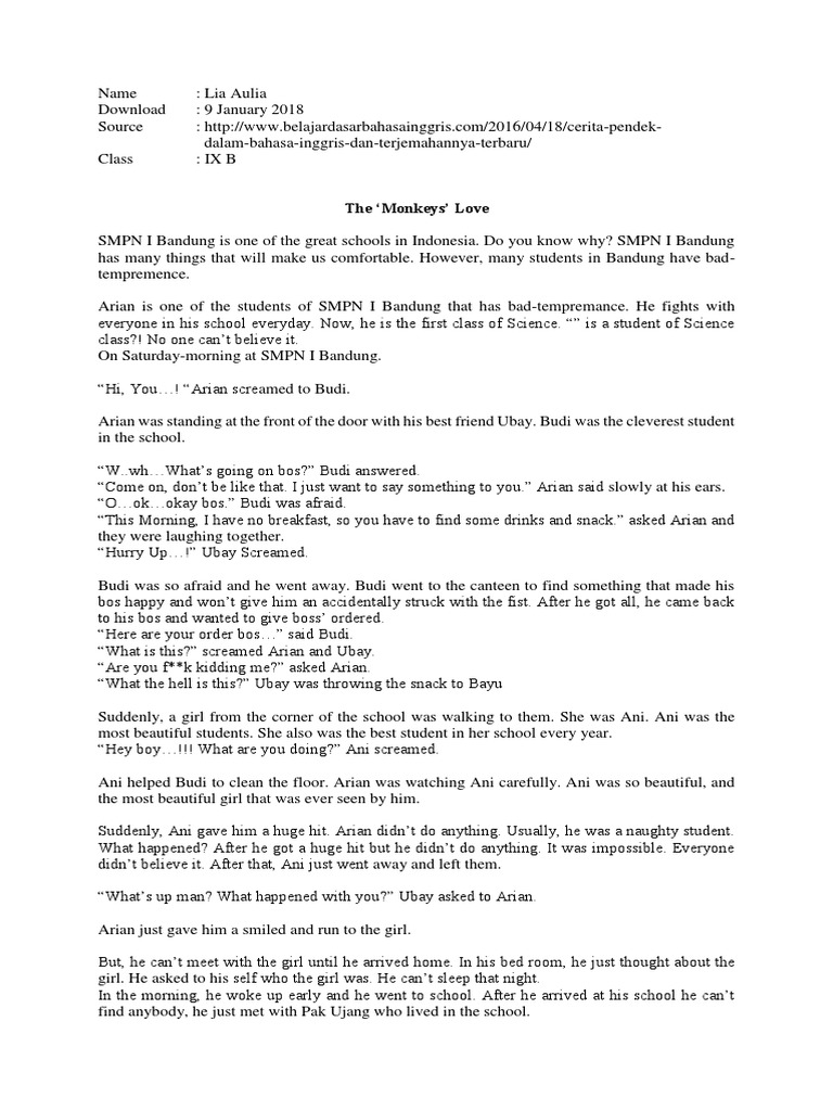Cerpen Cinta Monyet Smp Negeri 2 Tarowang Kabupaten Jeneponto