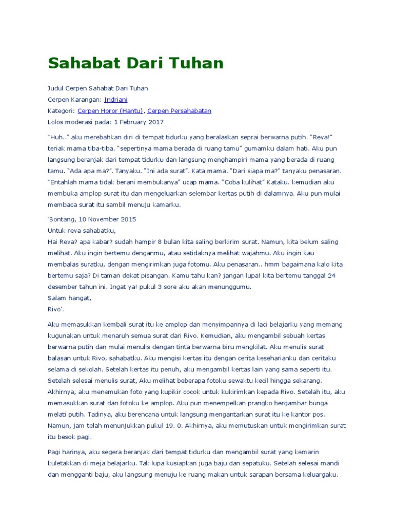 Pada versi lain yang tersebar diceritakan bahwa sosok yang ada dalam kamar kosong tersebut adalah suster ngesot. Contoh Cerpen Persahabatan Selain kisah romantis ternyata ada juga cerpen remaja yang tak kalah terkenal yaitu cerpen dengan tema persahabatan. Pengertian Teks Ulasan Contoh Ciri Tujuan Struktur Dan Kaidahnya Sebagai insan akademik kita tentu harus membaca karya-karya ilmiah antara lain buku.