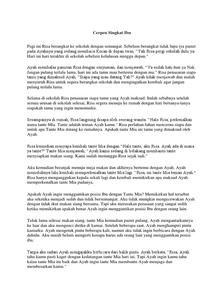 Inti dari cerita ini mengisahkan tentang seorang Ibu yang sangat sayang pada anaknya. DOC cerpen untukmu ayah rizki anggraini - AcademiaeduCerpen rumah dari tangan ayahCerpen AyahSaat Ayah Meninggal Dunia Cerpen Koran MingguCoretan Imi Fadhil. Cerpen Cinta Ayah dan Ibu.