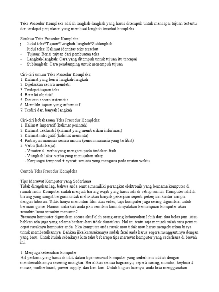 Ciri Ciri Teks Prosedur Kompleks Dan Sederhana