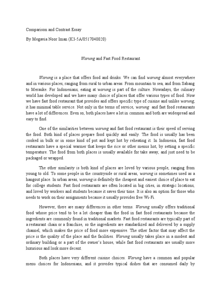 Comparison And Contrast Essay Menu Fast Food Restaurants