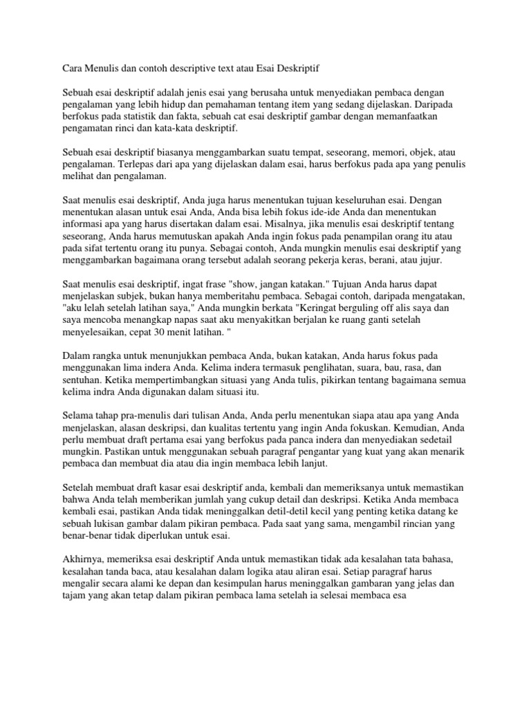 Contoh Esai Deskriptif Contoh Esai Deskriptif Majalahpendidikan Com