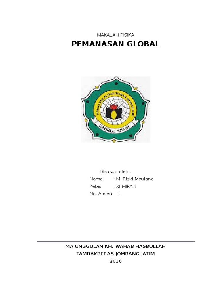 Contoh Cover Makalah Pemanasan Global Kumpulan Contoh Makalah Doc Lengkap