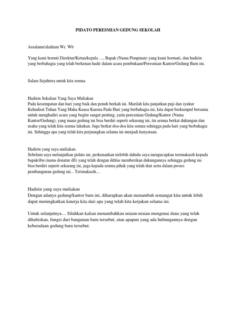 Contoh pidato peresmian. PIDATO WAKIL BUPATI PERESMIAN GEDUNG SMK MUHAMMADIYAH BELITUNG TIMUR Jumat 26 Oktober 2018 Pukul. 100 Contoh Pidato Peresmian Kualitas SDM Berperan Penting. Tengah Dusun Birah Desa Kelubi Kec.