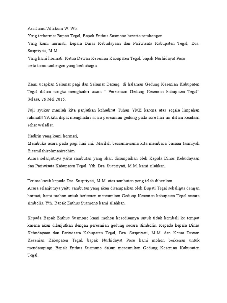 Contoh Teks Mc Acara Peresmian Gedung Baru Kumpulan Referensi Teks Pidato