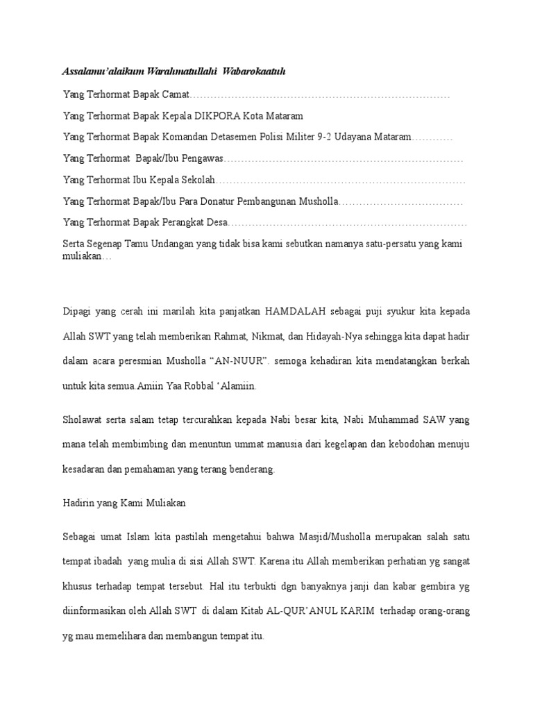 Contoh Pidato Peresmian Masjid Baru Blog Iseng Kumpulan Informasi Menarik