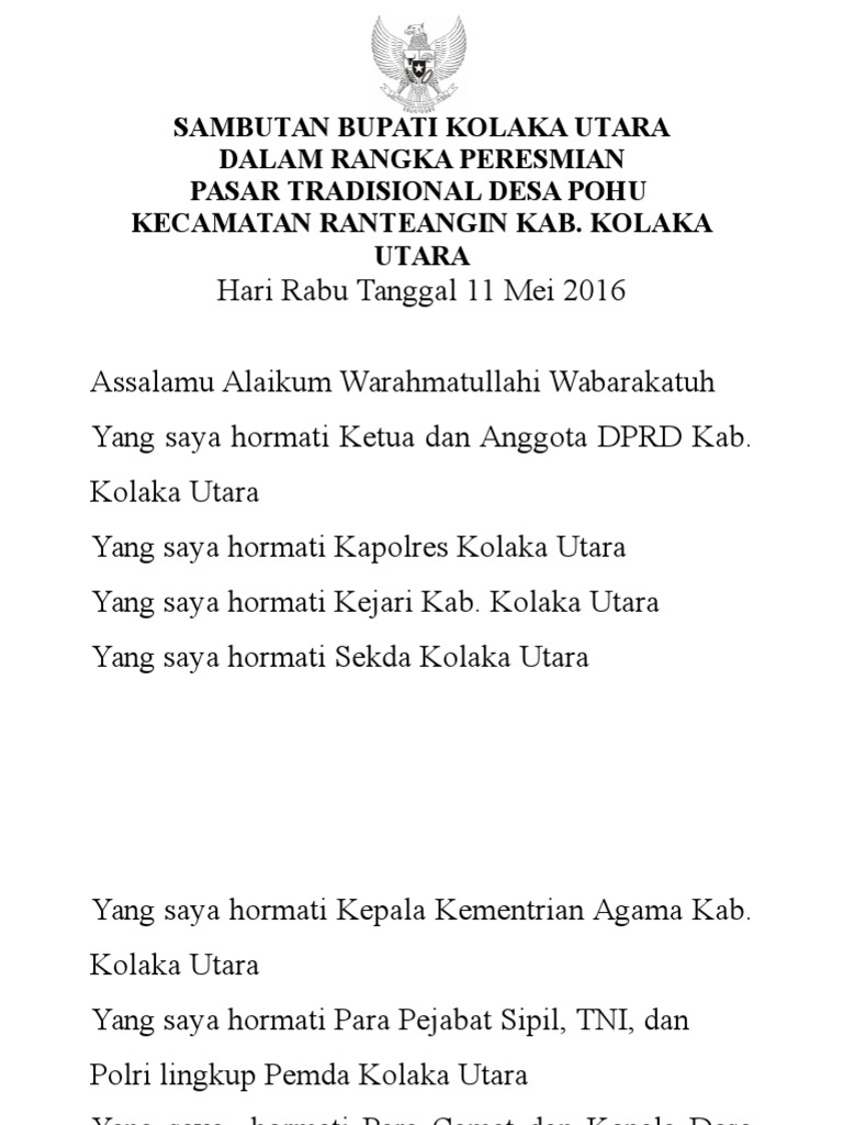 April 10th 2018 - Ini sala satu contoh pidato peresmian dan hidayahnya sehingga kita dapat hadir dalam acara peresmian Masjid Sungguh merupakan suatu kebanggaan dan rasaContoh Sambutan Pada Peresmian Kantor Kata Estetika.