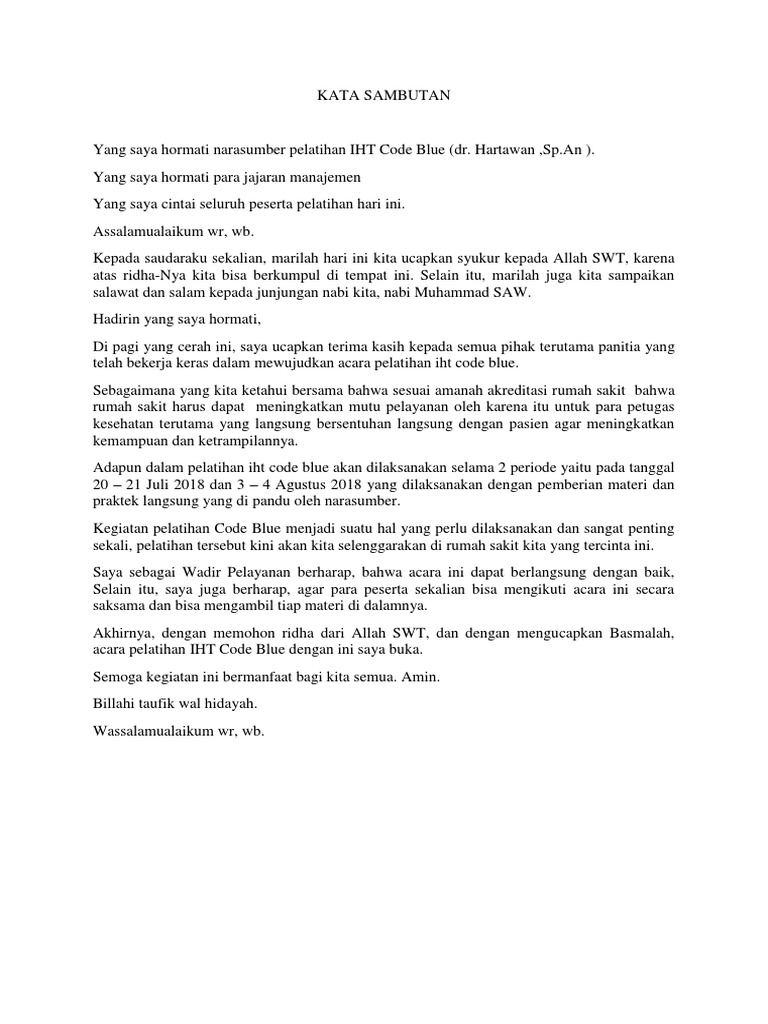 Contoh Soal Dan Materi Pelajaran 2 Contoh Kata Sambutan Pembukaan Acara Resmi
