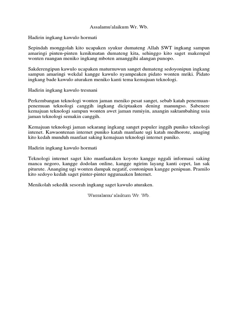 Contoh Pidato Bahasa Jawa Tentang Kemajuan Teknologi Sesorah Docx