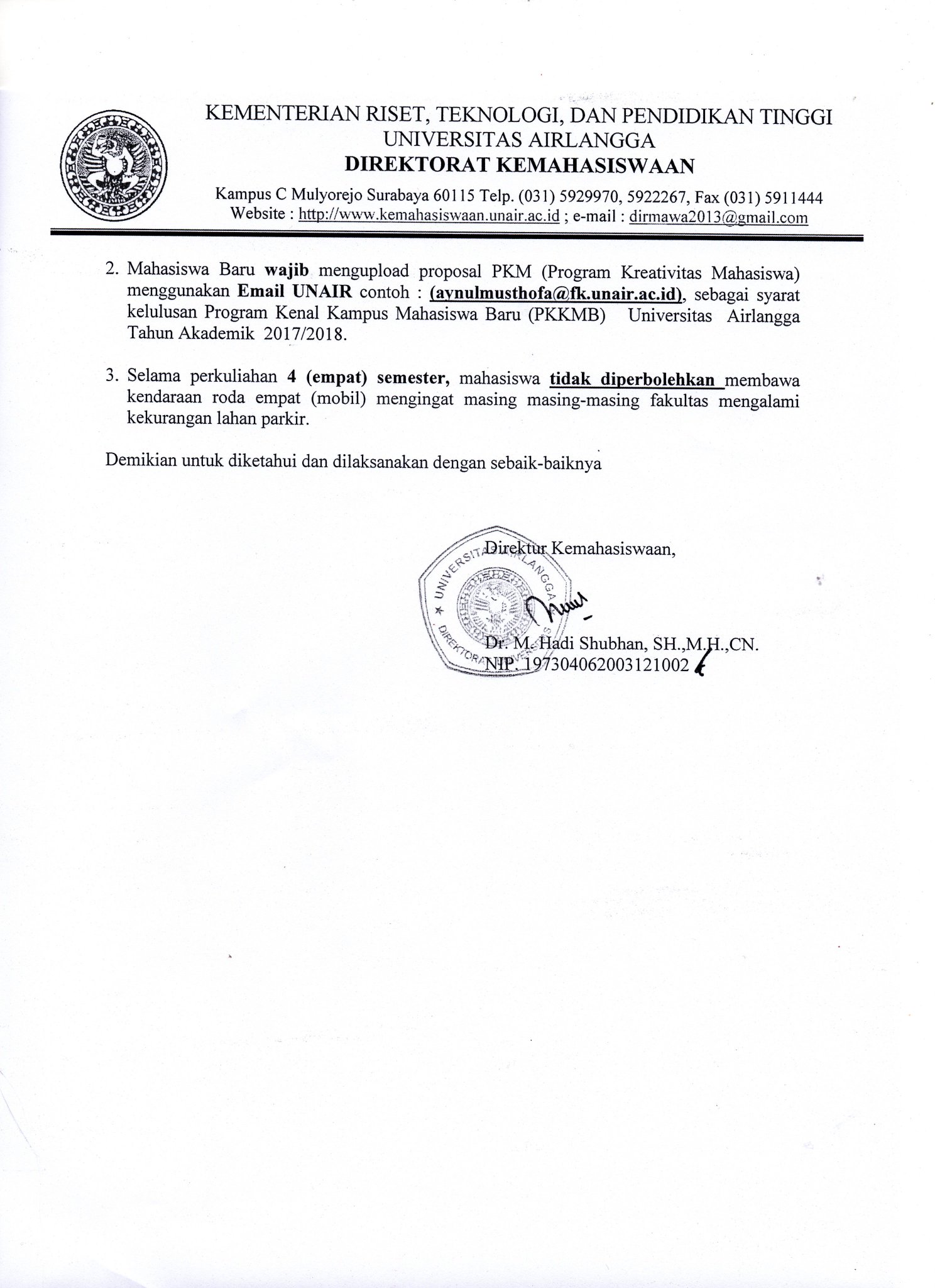 Revisi Pengumuman Pengenalan Kehidupan Kampus Untuk Mahasiswa Baru 2017 Fakultas Psikologi