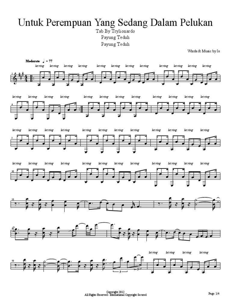 Untuk Perempuan Yang Sedang Dalam Pelukan Guitar Pro Tab By Payung Teduh Musicnoteslib Com