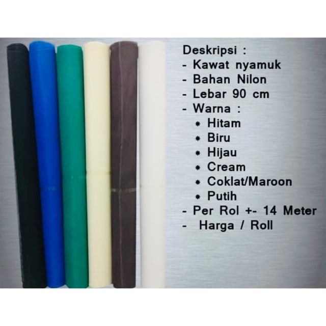 Harga Kawat Kasa Kain Nyamuk Parabola Baja Silver TERMURAH TEBAL Per RollRp289000 Harga kawat nyamuk nilon kasa jaringroll anRp87500 Harga Promo kawat nyamuk alumunium anti karat 1 roll LimitedRp435500. 10-12 METER Per -1 Satu ROLL BERAT Jujur 1 ROLL. Untuk yang kain velboa motif hewan per roll Rp 33500 dan per yard yaitu 34000.
