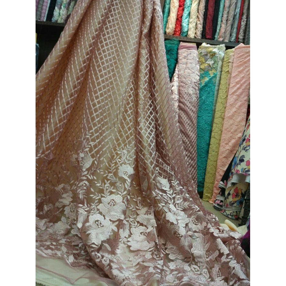 Promo Kain Bahan Tile Tulle Motif Anyam Bunga Pinggir Berkwalitas Shopee Indonesia